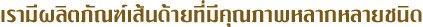ด้วยสีสันที่มากมายกว่า 1,000 สี ในหลากหลายชนิดและขนาดของเส้นด้าย ทำให้เราสามารถตอบสนองความต้องการของลูกค้าในทุกระดับ ทุกประเภทการใช้งาน อาทิเช่น เสื้อผ้า รองเท้า เฟอร์นิเจอร์ พ้ง คิ้วท์ และงานตัดเย็บอื่นๆ ภายใต้แบรนด์ ตราสายรุ้ง ตราไพ่ ตราจักร และตราภูเขาไฟ สินค้าของทางบริษัท ได้รับการผลิตด้วยเครื่องจักรที่ทันสมัย ประกอบกับระบบคอมพิวเตอร์ในการควบคุมการผลิตทุกขั้นตอน เพื่อให้ได้คุณภาพสูงสุดในทุกสินค้า ทั้ง Spun Polyester, Core Spun และ Textured Poly เป็นต้น ทำให้มีประสิทธิภาพและเหมาะกับวัตถุประสงค์กับงานของลูกค้ามากที่สุด |